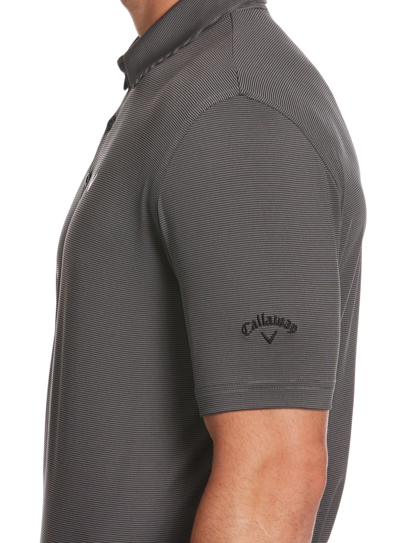 Instantly elevate your game and your on-course style with this versatile Callaway Pro Spin men's golf polo. It’s built for comfort and performance with soft and breathable jersey fabric that contains added stretch for a full range of motion from tee to green. This short sleeve golf shirt is equipped with moisture-wicking Opti-Dri technology to help keep you feeling cool and dry and it has UPF 30 sun protection to safeguard your skin from the sun's harmful UV rays. Fine line stripes bring fashionable flair to this sporty men’s polo shirt and the classic golf fit provides roomy comfort while you play through. Fashionable and functional, this performance golf top is available in a full range of regular and Big & Tall sizes to comfortably accommodate any avid golfer.