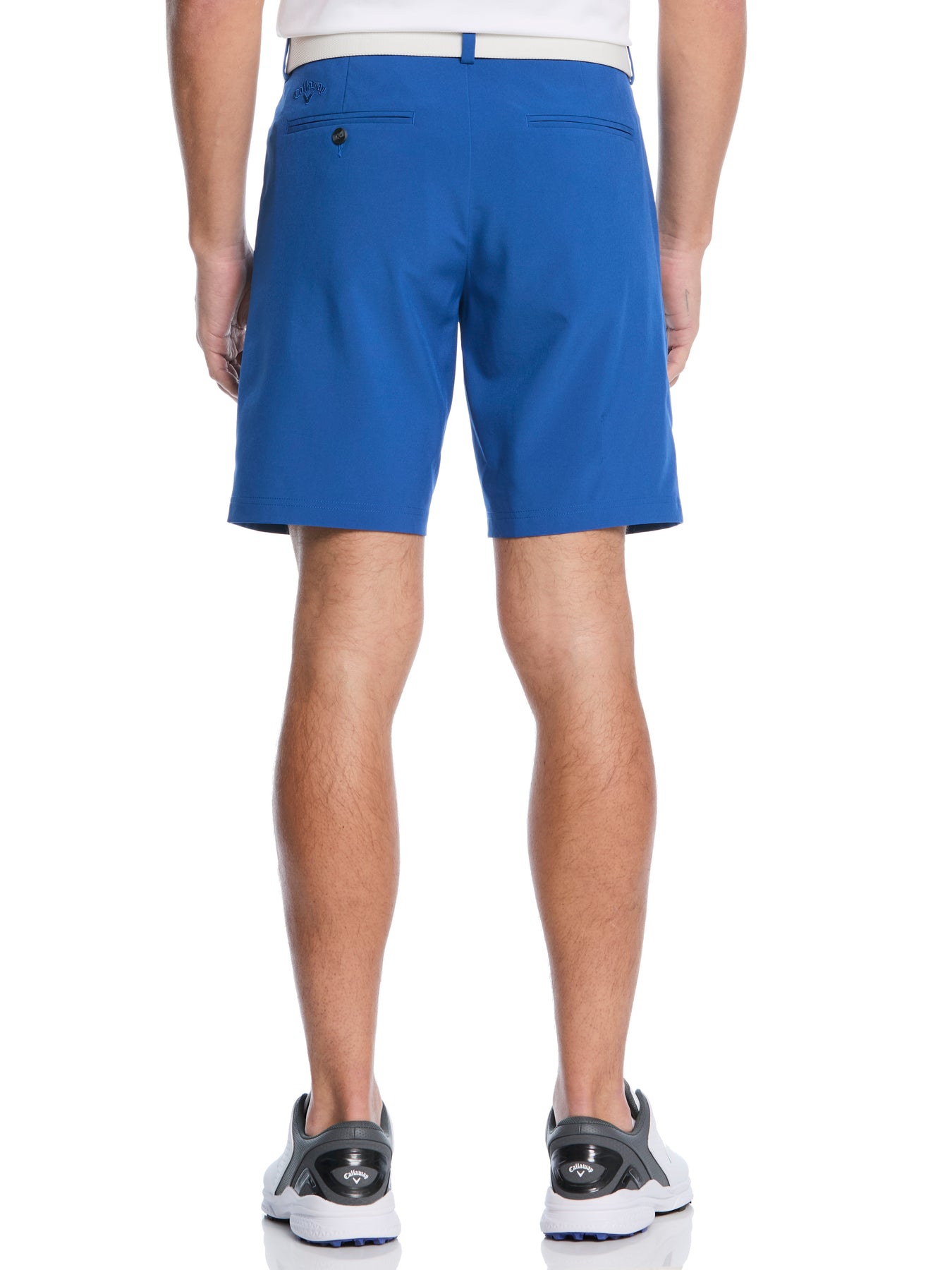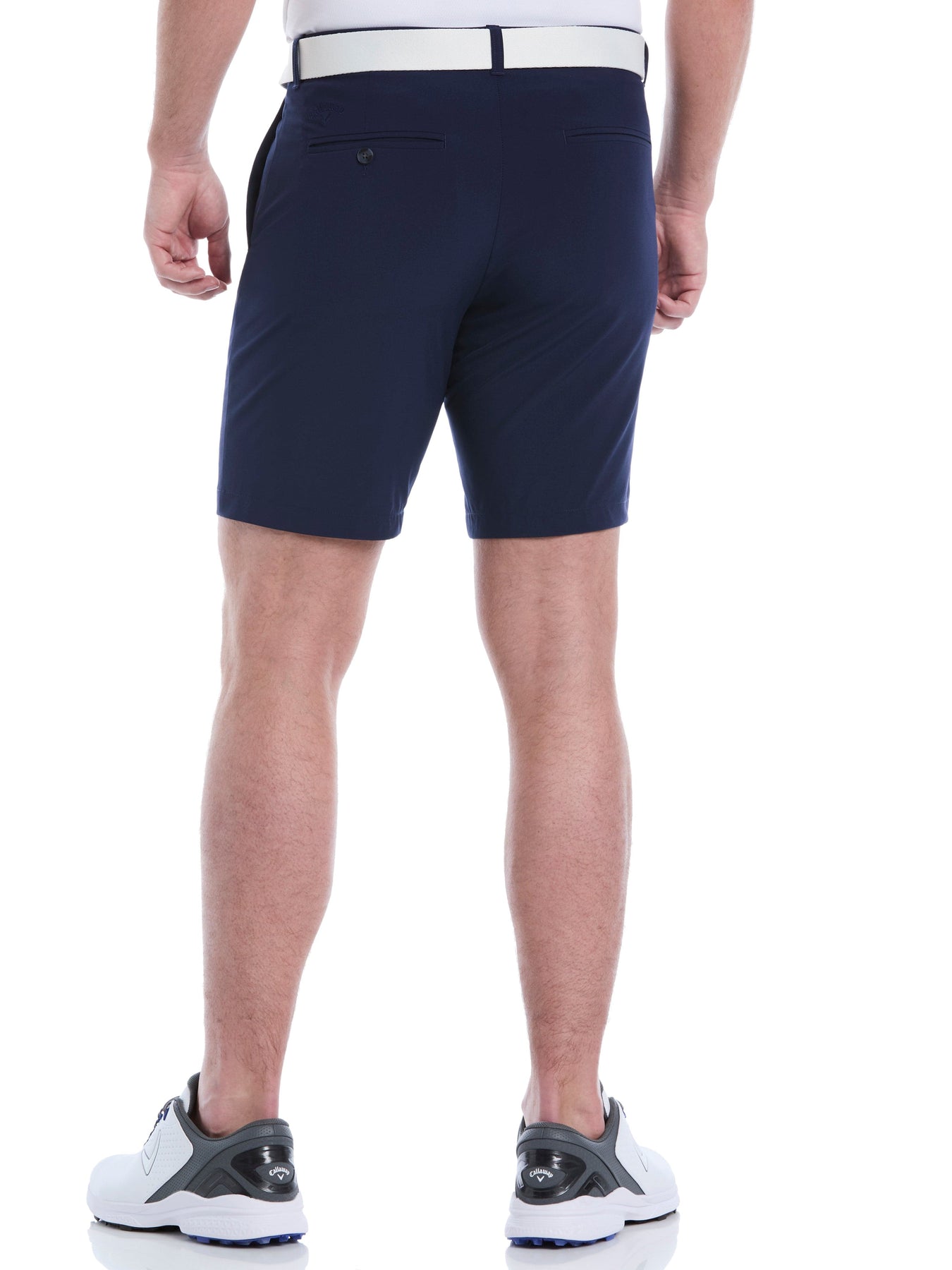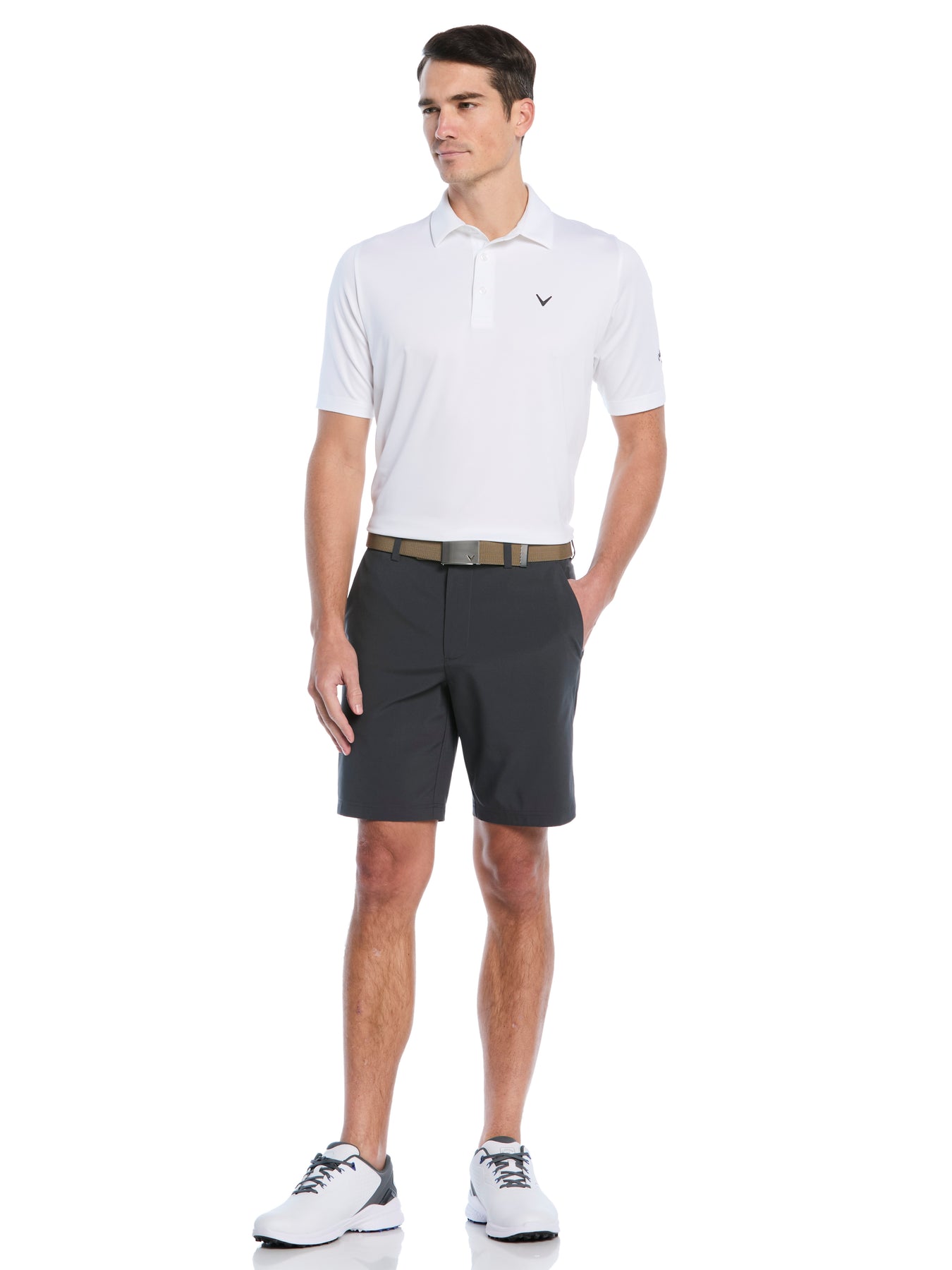 A practical addition to any guy’s golf wardrobe, these flat front shorts from Callaway Apparel have a sleek solid-colored design. The men's golf shorts feature stretch in both the fabric and waistband, for a comfortable and flexible fit. They’re crafted with a tight plain weave pattern that stands up well to regular wear and washing. Sun protection helps to block damaging UV rays, while moisture wicking helps to keep you dry during long rounds.