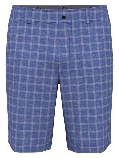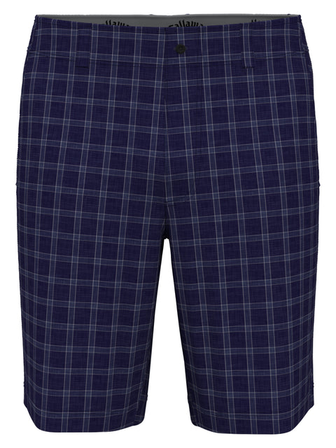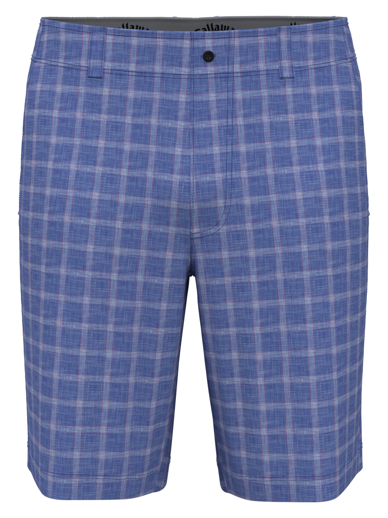 Featuring a textured plaid design, these Callaway men’s shorts will be a dapper addition to your golf attire. The men’s golf shorts are made with a tight plain weave pattern for impressive durability, and they’re equipped with sun protection to help defend against damaging UV rays. A stretch waistband helps to keep them comfortably in place while you play through your round, while stretch fibers in the fabric let you follow through without feeling constricted. Moisture wicking technology helps to keep you dry when the sun is beating down on the fairway.