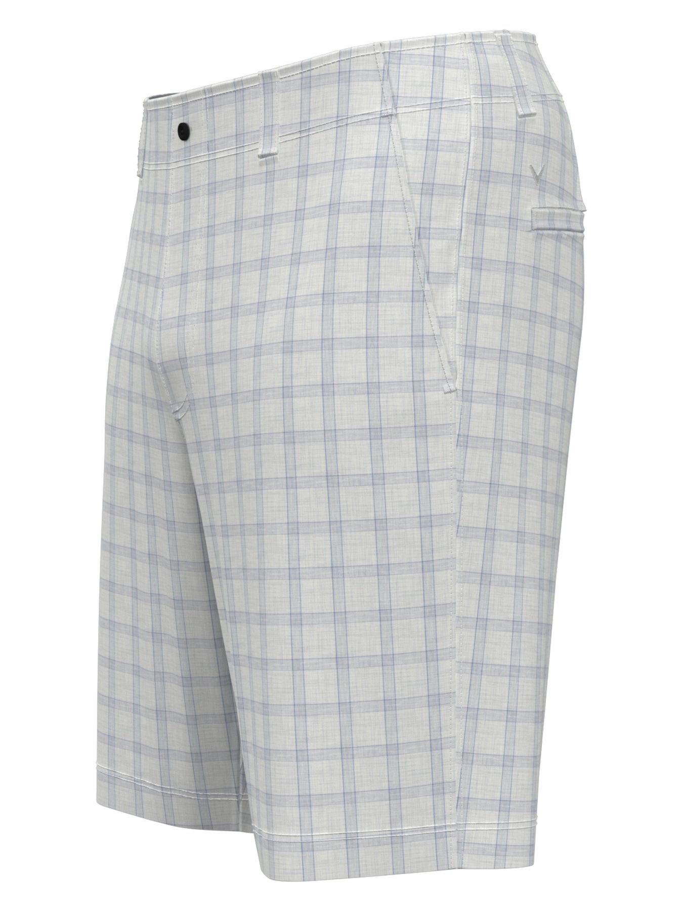 Featuring a textured plaid design, these Callaway men’s shorts will be a dapper addition to your golf attire. The men’s golf shorts are made with a tight plain weave pattern for impressive durability, and they’re equipped with sun protection to help defend against damaging UV rays. A stretch waistband helps to keep them comfortably in place while you play through your round, while stretch fibers in the fabric let you follow through without feeling constricted. Moisture wicking technology helps to keep you dry when the sun is beating down on the fairway.