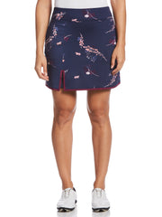 Packed with performance features and flattering style, this Callaway skort is sure to become a favorite. The women's golf skort features a subtle flowing floral pattern that catches the eye for its feminine design. The TrueSculpt™ slimming panel smooths your shape for a flattering fit. Opti Dri™ technology keeps you dry as it wicks moisture from your body. A v-notch on the side and stretch in the soft jersey material provide a full range of motion. UPF 50+ sun protection helps prevent UV rays from penetrating the fabric to protect your skin under sunny skies.