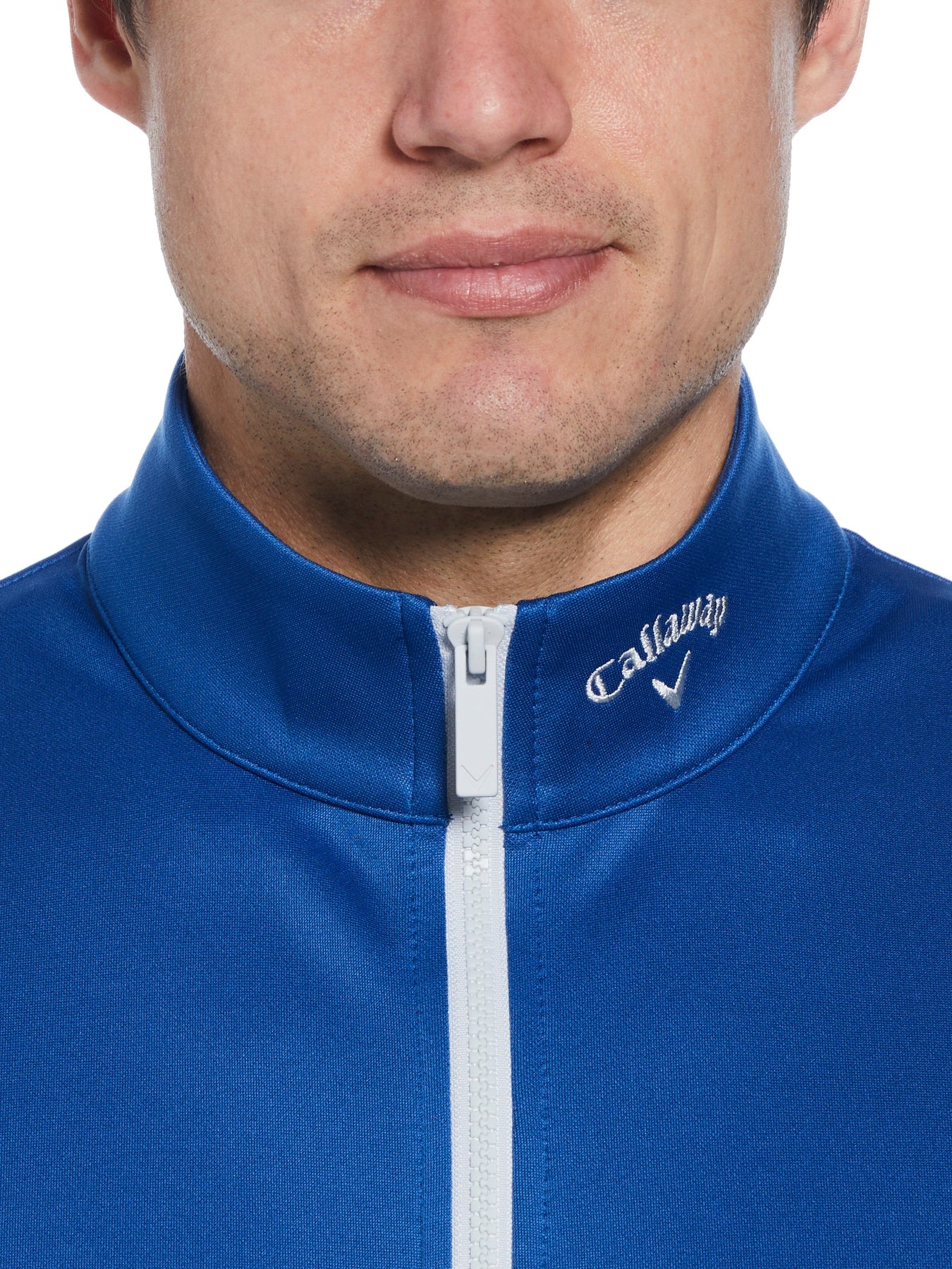 This Callaway men's golf vest is a lightweight, sleeveless layering piece that's perfect for the fairway. Made from soft thermal fabric for comfort and warmth, this lightweight golf vest includes stretch for easy movement with every swing. The front full zip and stylish mock neck collar make for easy wear while the chevron detailing on the back adds a unique touch.