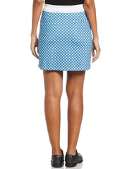 Tee off in style with this Callaway women’s golf skort. It’s crafted with a slimming TrueSculpt™ panel to help smooth your shape and contains added stretch for the flexibility you need to bend and swing. An eye-catching geometric floral print keeps this stylish golf skort looking fresh, while Opti-Dri™ technology wicks away sweat to keep you feeling fresh. Jersey fabrication adds softness to this flattering wrap golf skort, which contains 30% recycled polyester for sustainable style.
