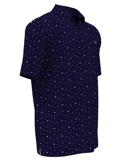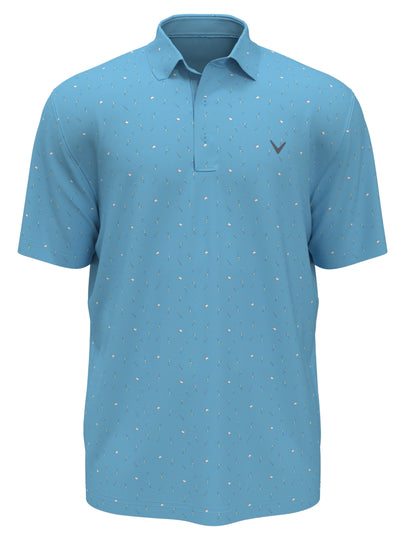 Ideal for days when you’re ready to relax, this Callaway men’s polo shirt is covered with a fun print featuring items like golf clubs and martinis. The men’s golf top features added stretch to let you make each swing comfortably and with optimal form. The soft jersey knit fabric is light and easy to wear in warmer weather, and it wicks away moisture to help keep you feeling fresh, dry and ready to challenge another hole. The men’s golf top is finished with sun protection technology to help block damaging UV rays from passing through the material.