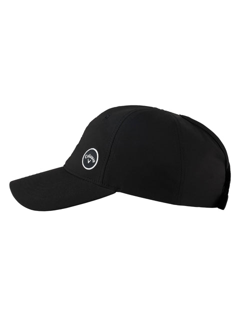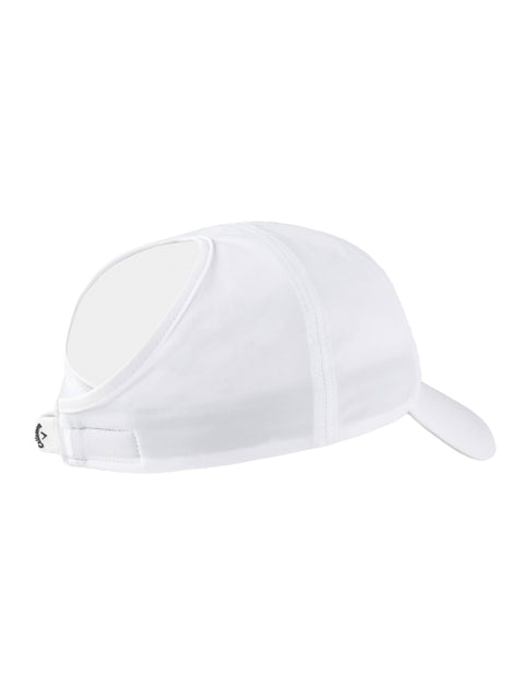 Performance low-profile hat with subtle branding designed specifically to accommodate a pony-tail.