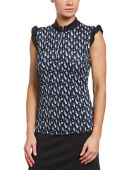 Dress the part as you next birdie putt drops with the fashionable hummingbird print of this women’s golf shirt from Callaway. A sleeveless design with added stretch in the soft jersey fabric frees you up to enjoy a full range of motion with every swing. Ideal for sunny days on the green, this golf shirt features Opti Dri™ moisture-wicking technology to keep you dry and comfortable as well as UPF 50 sun protection. A quarter-zip closure allows for easy on and off and custom styling options.