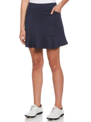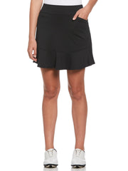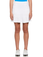 The hem flounce on this fashionable and functional Callaway golf skort effortlessly elevates your on-course apparel. Opti Dri™ moisture wicking technology built into our golf skorts pulls sweat away from the body for on-course comfort throughout your round. Designed for effortless movement with every shot, these performance womens golf skorts are equipped with Swing Tech™ technology with stretch in the engineered side seams for a full range of motion. A TrueSculpt™ panel helps smooth out your shape. Four-way stretch inside shorts provide comfortable coverage that moves with you, and can be easily detached with a snap as needed. This women's golf skort is crafted with sun protection fabric, making it an ideal choice for those sunny days on the course.