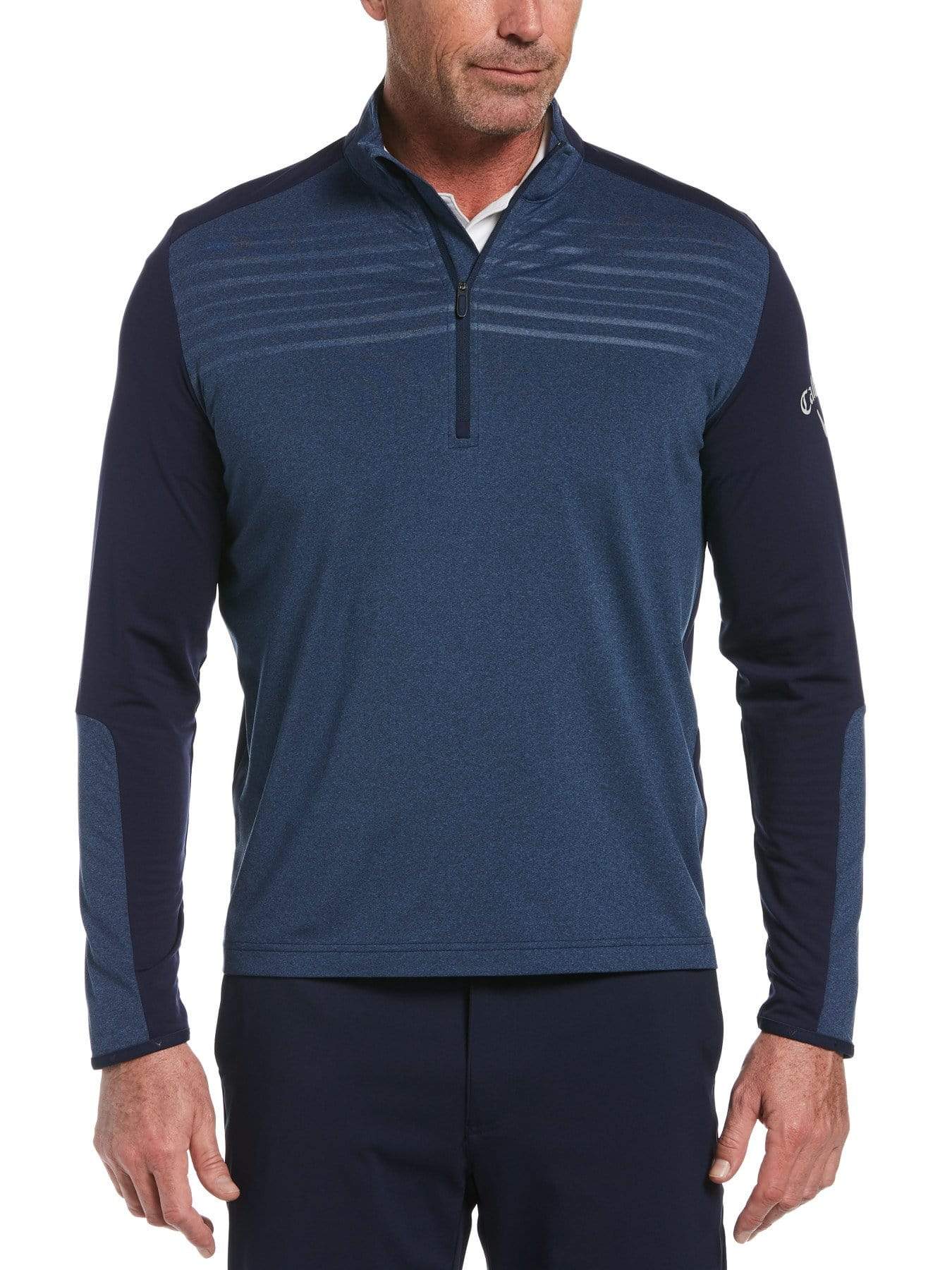 Gear up and tee off in this Weather Series™ Callaway golf sweater with mock collar. Aquapel™ technology creates a barrier of lightweight protection to resist water and spills. A 1/4 zip allows you to take off the golf pullover in no time if the weather warms up. Offering protection from the elements, you'll play your best no matter what the weather brings.