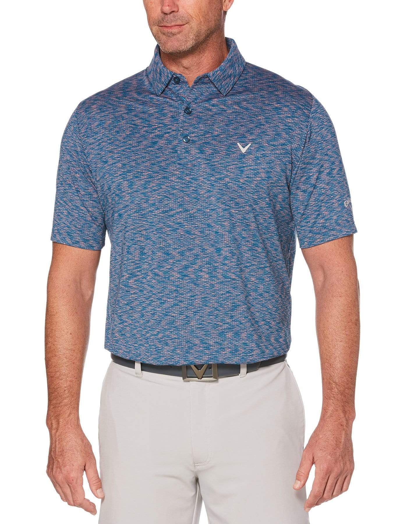 This comfortable Callaway golf polo is created with marled jacquard fabric which exudes a subtle, textured pattern for a sophisticated appearance. Added stretch provides unrestricted range of motion, so you can execute your golf game with precision.
