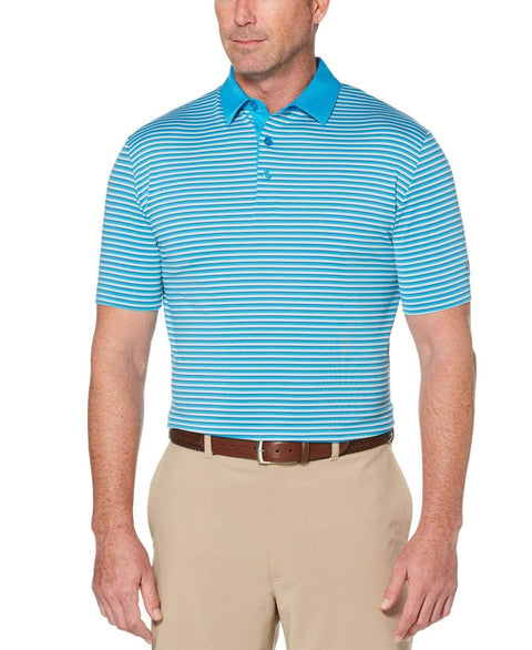 This Callaway men's golf polo is a combination of comfort and style It has a three-color striped print for visual interest and contains stretch for added flexibility. Opti Dri™ moisture-wicking and cooling technologies pull sweat and heat away from the skin to keep you cool and dry. Play with confidence knowing the built-in UPF 40 protection is helping to keep your skin safe from the sun's harmful rays.