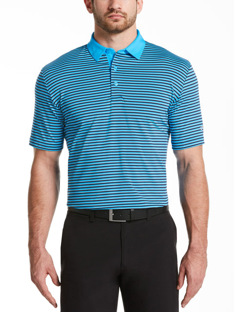 This Callaway men's golf polo is a combination of comfort and style It has a three-color striped print for visual interest and contains stretch for added flexibility. Opti Dri™ moisture-wicking and cooling technologies pull sweat and heat away from the skin to keep you cool and dry. Play with confidence knowing the built-in UPF 40 protection is helping to keep your skin safe from the sun's harmful rays.