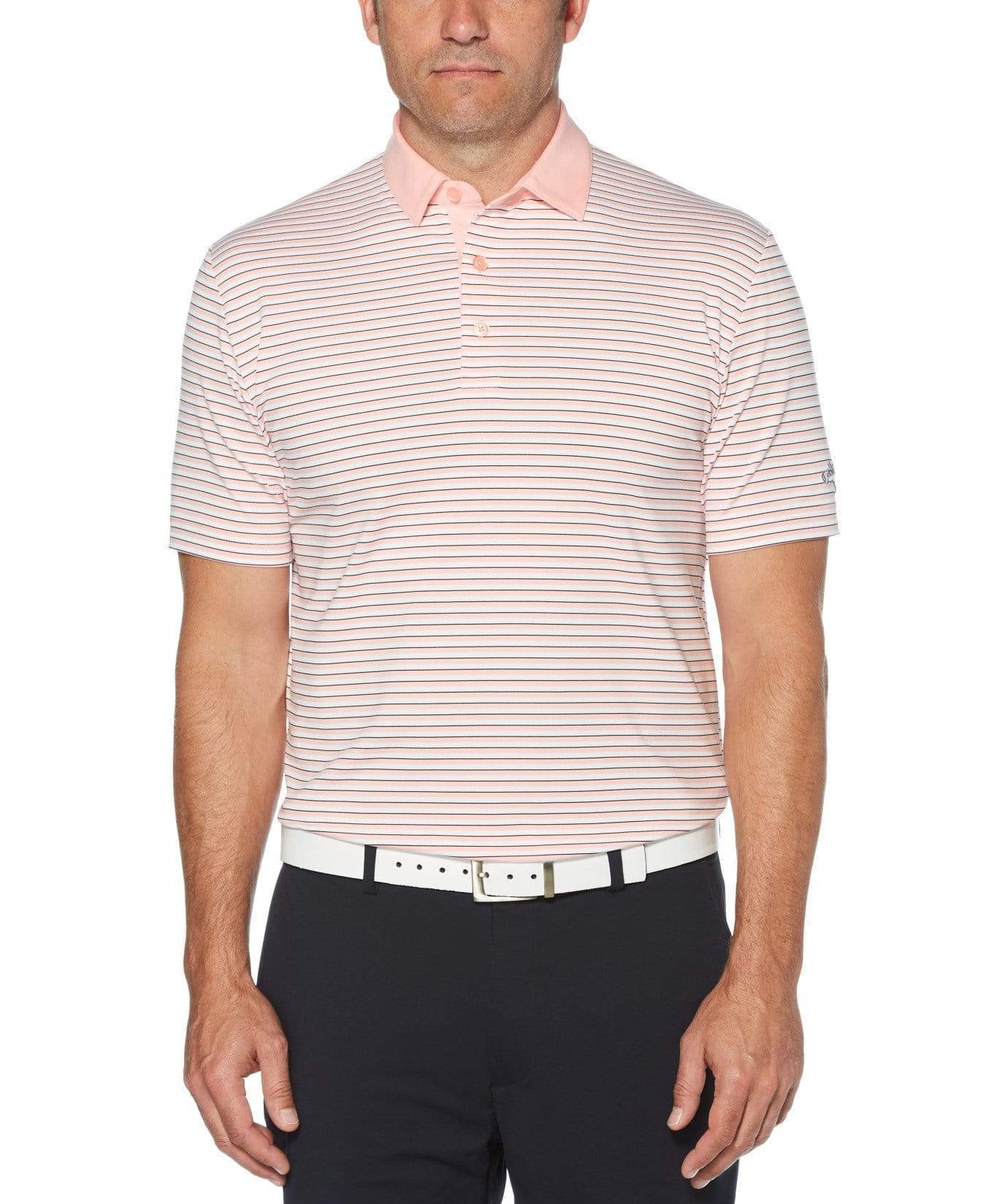 This Callaway men's golf polo is a combination of comfort and style It has a three-color striped print for visual interest and contains stretch for added flexibility. Opti Dri™ moisture-wicking and cooling technologies pull sweat and heat away from the skin to keep you cool and dry. Play with confidence knowing the built-in UPF 40 protection is helping to keep your skin safe from the sun's harmful rays.