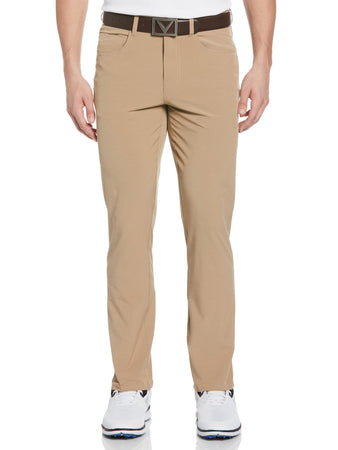 Step up your style out on the course or in your day-to-day activities with these versatile men’s golf pants from Callaway. The golf trousers are made with dobby fabric, which has tiny raised geometric shapes woven into its surface for a sophisticated textured look. The lightweight material has moisture-wicking technology to help keep you dry, while 4-way stretch helps to ensure a full range of motion. Five pockets provide practical on-the-go storage when you’re strolling around town or heading off to lunch with the guys after your round.