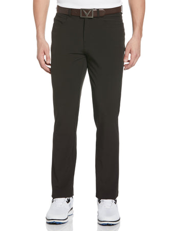Step up your style out on the course or in your day-to-day activities with these versatile men’s golf pants from Callaway. The golf trousers are made with dobby fabric, which has tiny raised geometric shapes woven into its surface for a sophisticated textured look. The lightweight material has moisture-wicking technology to help keep you dry, while 4-way stretch helps to ensure a full range of motion. Five pockets provide practical on-the-go storage when you’re strolling around town or heading off to lunch with the guys after your round.