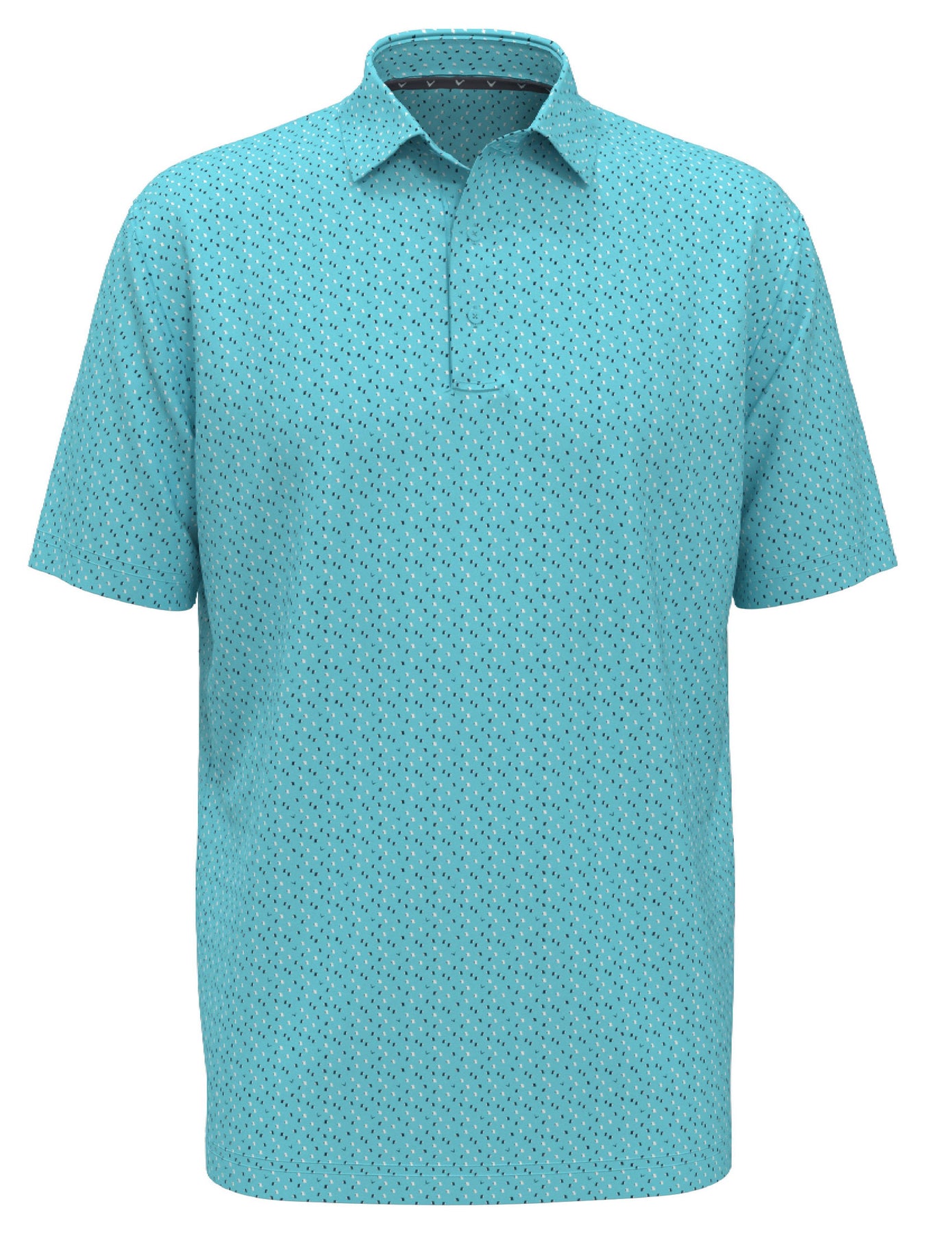 Stay focused on your swing while staying stylish on the course with this Callaway golf polo for men. The jersey fabric includes stretch for easy movement and has sun protection and moisture-wicking technology for added coverage during your game. This men's golf shirt has a golf-inspired print to give your look a touch of flair.