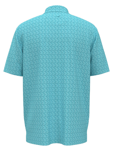 Stay focused on your swing while staying stylish on the course with this Callaway golf polo for men. The jersey fabric includes stretch for easy movement and has sun protection and moisture-wicking technology for added coverage during your game. This men's golf shirt has a golf-inspired print to give your look a touch of flair.