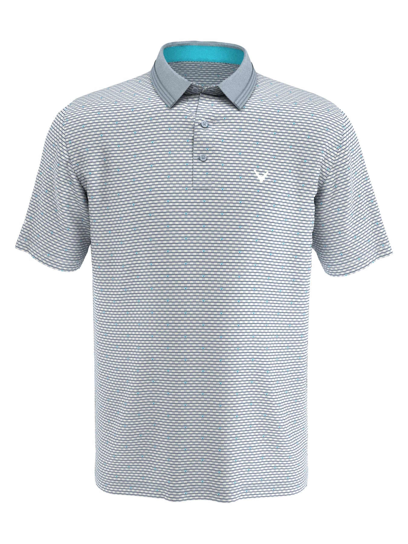 Ace your on-course style with this Callaway men’s golf shirt. This short sleeve golf polo features stretch fabric with Swing Tech™ technology to help you bend, twist and swing in comfort. Opti Dri™ moisture-wicking technology keeps you comfortable and dry. An allover chevron print and three-button placket with ribbed collar add classic style to this versatile golf polo.