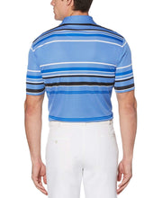 This striped mens polo shirt from Callaway will quickly become a staple of your golf gear. The athletic polo shirts simple design complements existing golf attire with ease. UV Block UPF 15 protection helps to ward off sunburns.