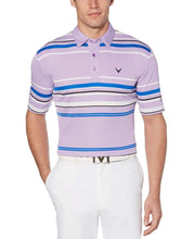 This striped mens polo shirt from Callaway will quickly become a staple of your golf gear. The athletic polo shirts simple design complements existing golf attire with ease. UV Block UPF 15 protection helps to ward off sunburns.