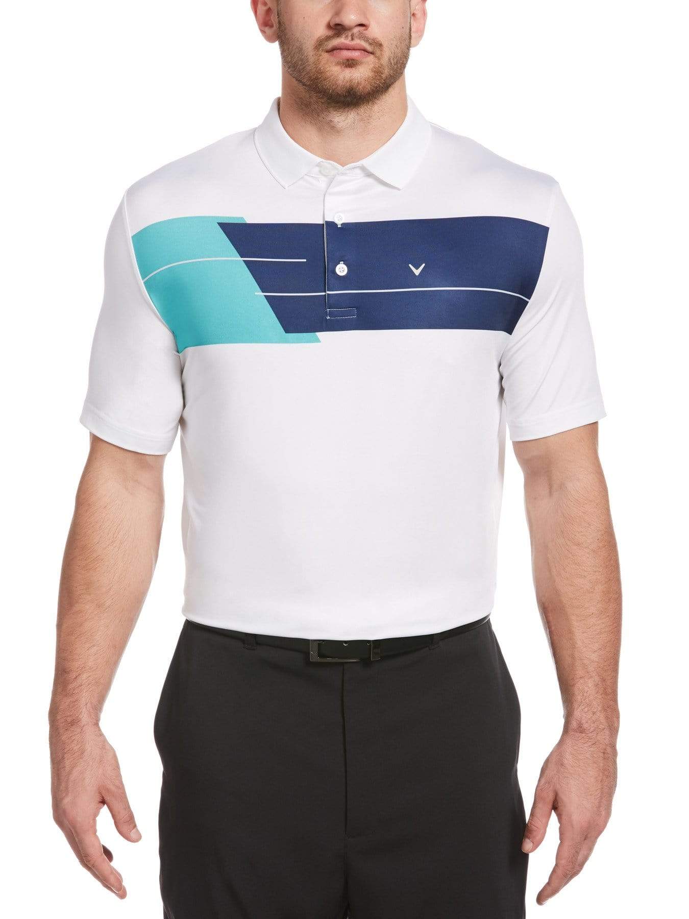 Multi-toned stripes across the chest of this men's golf polo from Callaway give it a fresh, athletic look perfect for the course. The golf shirt features moisture-wicking technology to help you stay cool and composed when the action picks up.