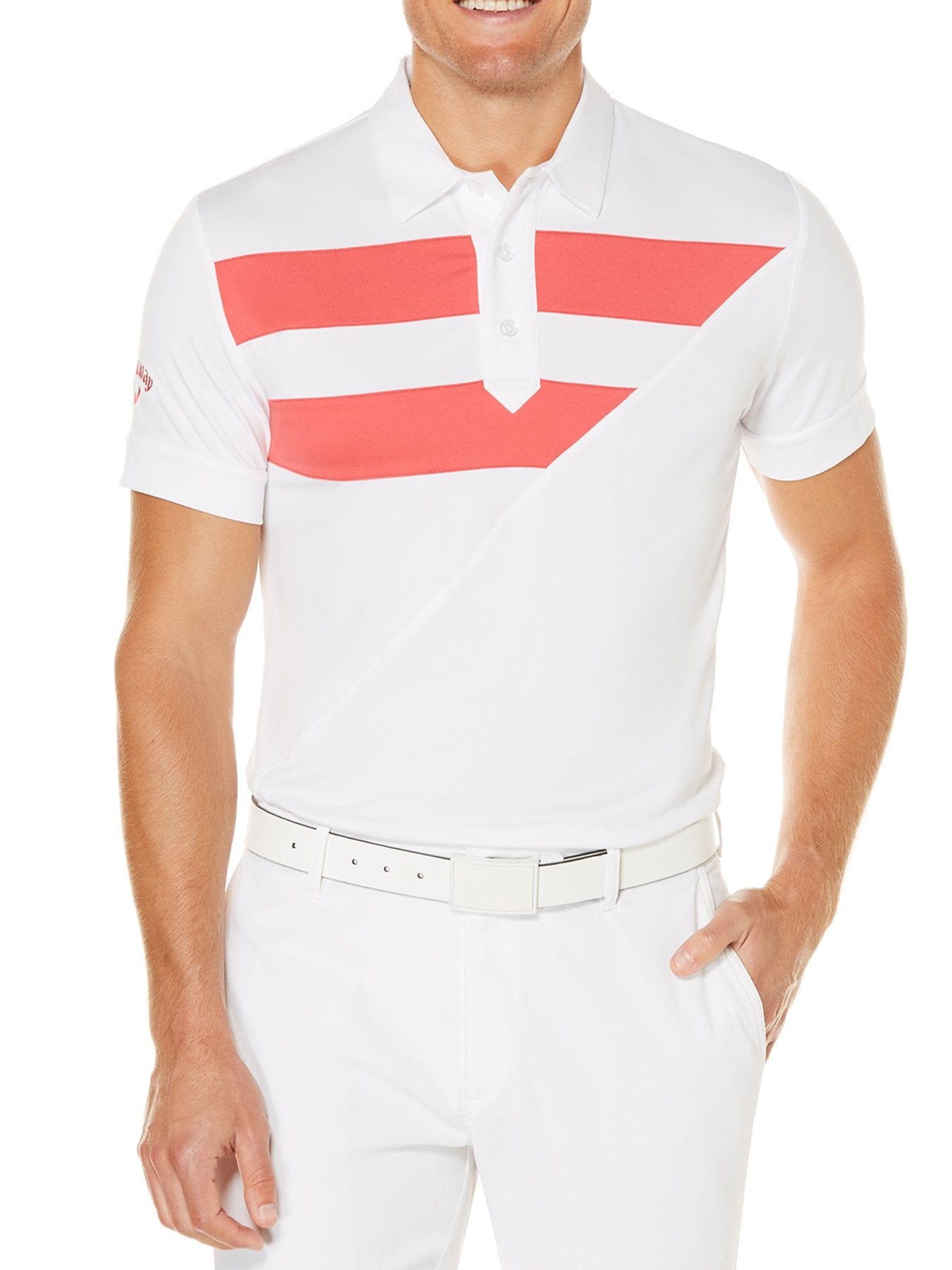 Be the best dressed on the front and back nine in our Callaway X Striped Diagonal Polo. We combined two designs into one with our big-block horizontal stripes across the chest, which are cut short of the shirt's full width by a textured diagonal line. Your polo is finished with a contrast Callaway Tour Logo on the right sleeve that matches the color of blocked stripes. Our Opti Dri™ moisture-wicking technology pulls sweat away from your body so you can cool down in the heat and Opti-Stretch allows you to attack the green by providing your arms the freedom to produce a fluid swing.