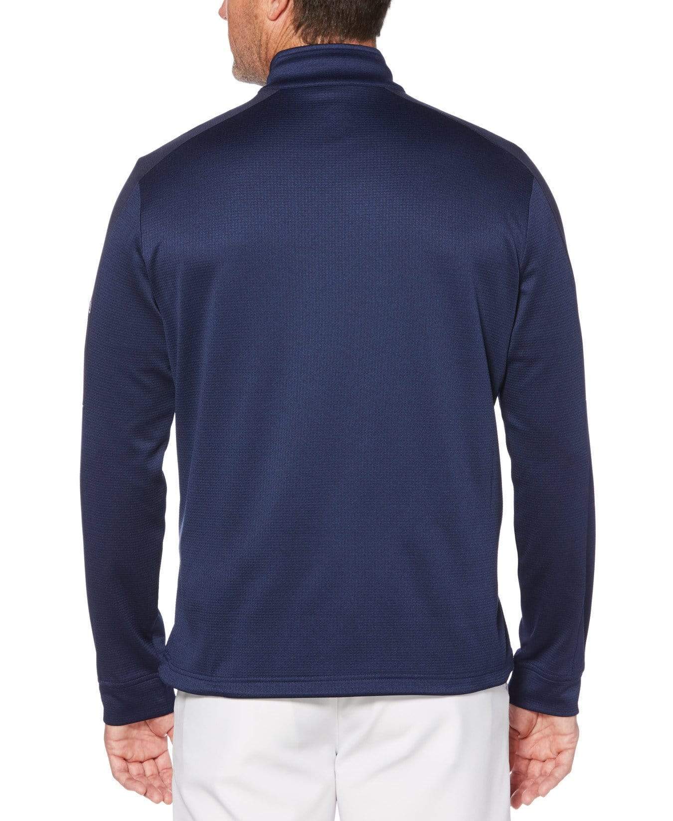 Steer clear of the water hazards and produce your best flops shots in this Callaway waffle fleece mid-layer pullover. We crafted your fleece with waffle knit, which is woven to prevent cool air from infiltrating the inside, and it's heathered to create a subtle two-tone appearance. Added stretch on the top of each shoulder provides you extra comfort while swinging. Callaway's Therm keeps you warm by creating a barrier between you and the cold weather, Stretch allows you to attack the green by providing your arms the freedom to produce a fluid swing and Shield gives your skin superior protection against the sun's UV rays.
