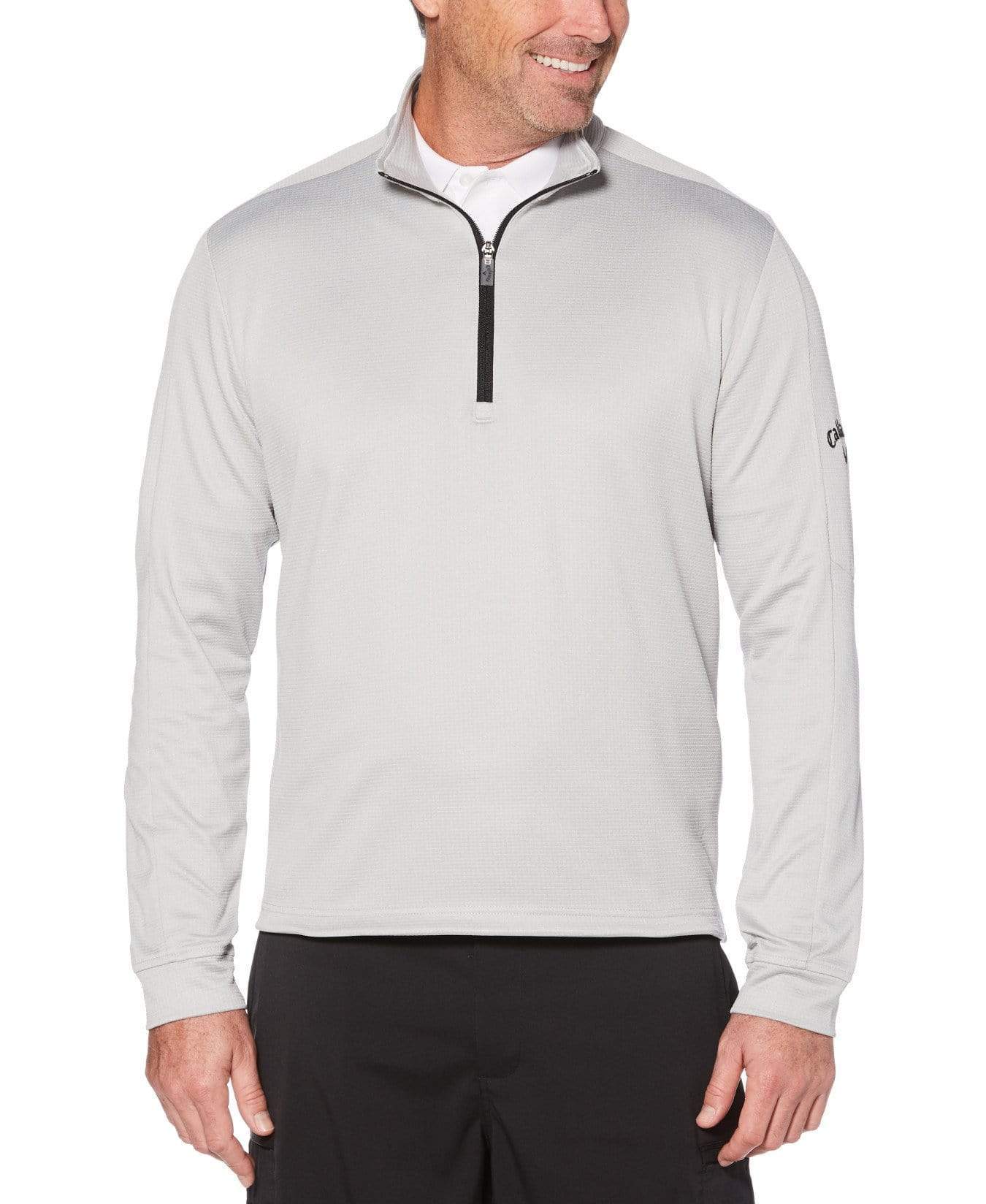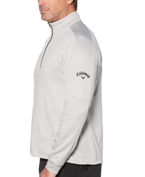 Steer clear of the water hazards and produce your best flops shots in this Callaway waffle fleece mid-layer pullover. We crafted your fleece with waffle knit, which is woven to prevent cool air from infiltrating the inside, and it's heathered to create a subtle two-tone appearance. Added stretch on the top of each shoulder provides you extra comfort while swinging. Callaway's Therm keeps you warm by creating a barrier between you and the cold weather, Stretch allows you to attack the green by providing your arms the freedom to produce a fluid swing and Shield gives your skin superior protection against the sun's UV rays.