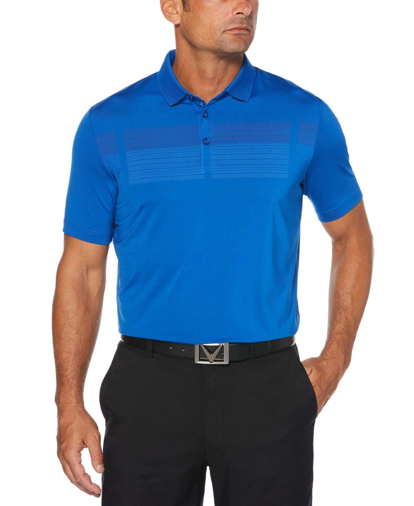 Stay cool and in control during each round in this ultra-comfortable Callaway golf shirt. The men's golf polo is crafted from stretch fabric to allow you to make each swing at full power. Moisture-wicking and cooling technologies help to keep you cool and dry as you move around the course, while UV Block UPF 50 protection helps to keep sunburns at bay. A birdseye print across the chest adds some modern flair to the design.