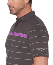 Rotate off the range and hit the links in this Callaway short sleeve polo. Thin horizontal stripes create a timeless shirt that's perfect on and off the course. A small range stripe cuts across the front and back, separated by thin lines. Callaway's Opti Dri™ moisture wicking technology pulls sweat away from your body to keep you cool in the heat, stretch fabric is created by interwoven layers that ensure maximum range of motion and cooling technology transfers heat away from your body to keep the garment cool.