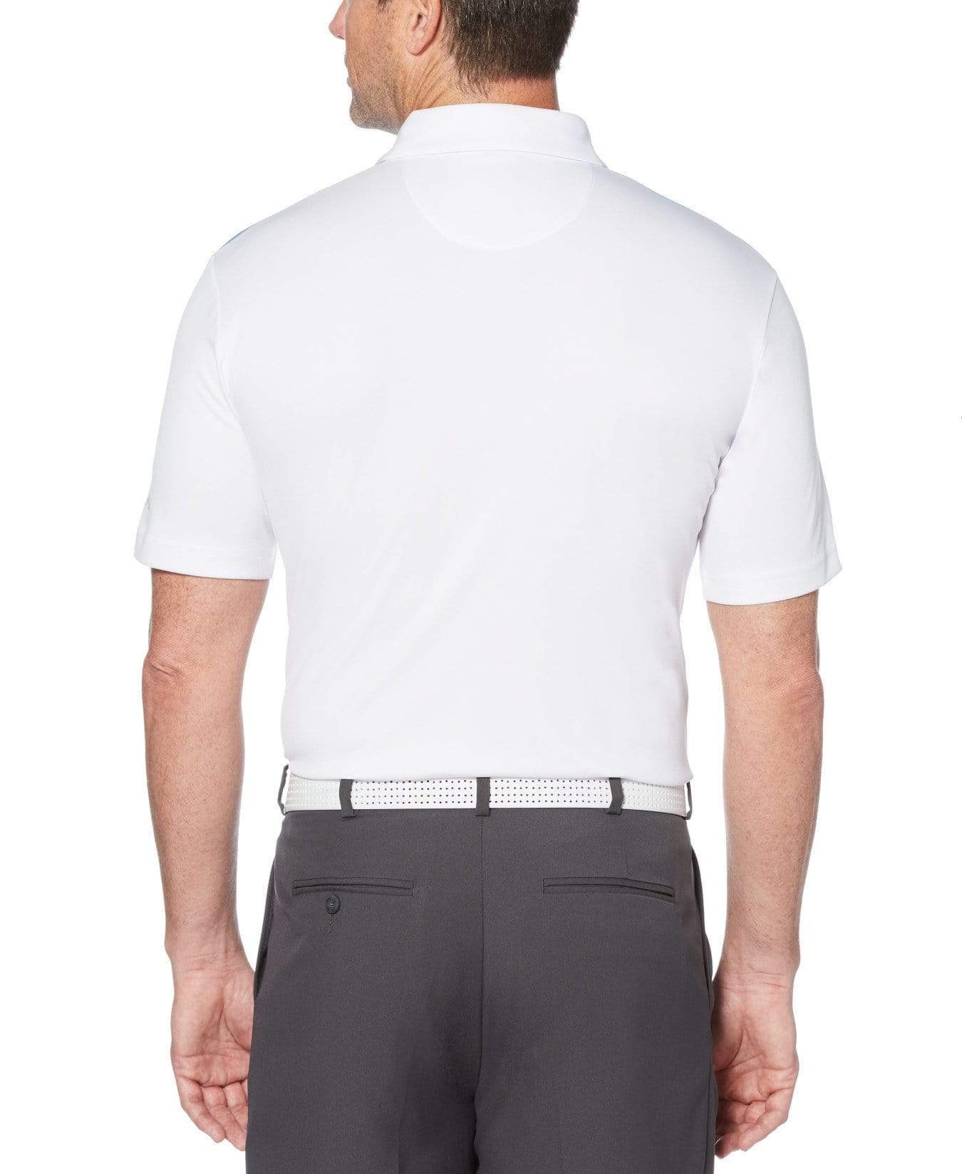 Featuring a textured print on the front, this golf polo will keep you looking sharp on the course. This athletic golf shirt features moisture-wicking technology to keep you dry from the first to last hole. It's finished with UV Block UPF 50 protection to help prevent harmful ultraviolet rays from reaching your skin and cooling technology that transfers heat away from your body.