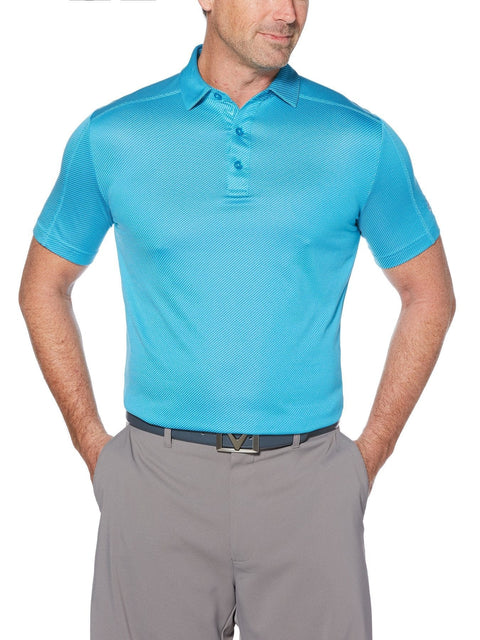 Just as journeymen are necessary for professional golf, this Callaway denim jacquard performance polo is a necessity for the 19th hole. Keeping the polyester fabrication for a lightweight, breathable feel, we finished your polo with an intricately raised jacquard woven pattern to create thin, textured diagonal lines throughout. Callaway's Opti Dri™ moisture wicking technology pulls sweat away from your body to keep you cool in the heat, cooling technology transfers heat away from your body to keep the garment cool and UPF 50 provides superior protection by blocking the sun's harmful UV rays.