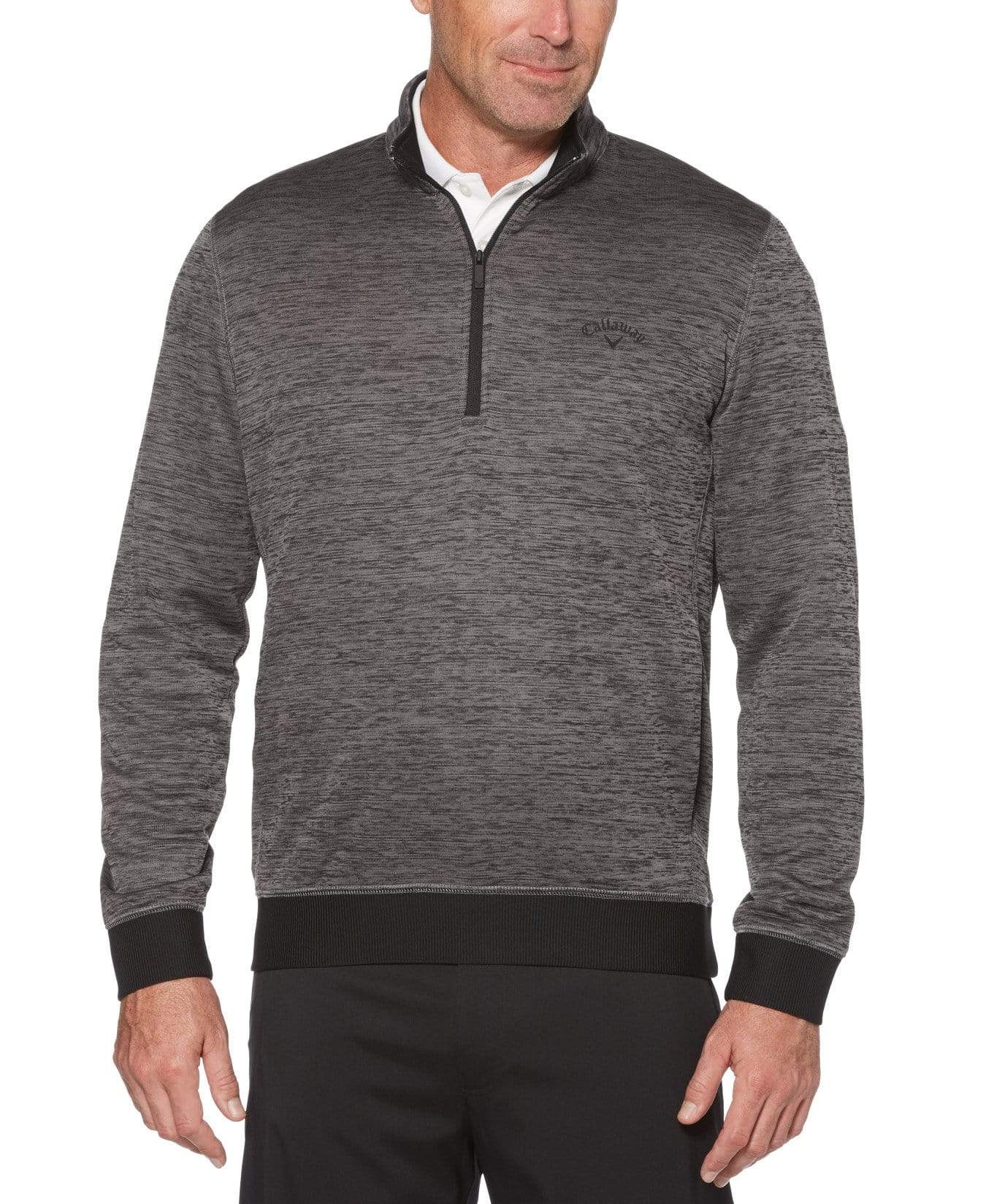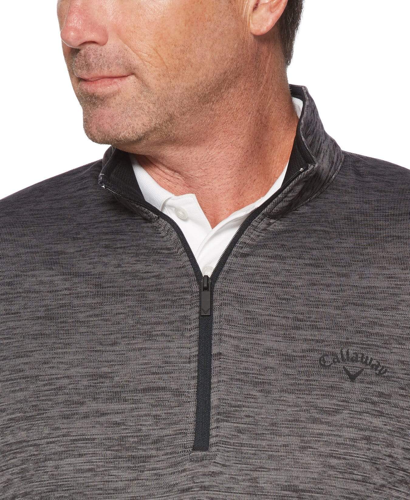 Harsh weather won't keep you of the course thanks to this versatile golf pullover from Callaway. Designed for dedicated golfers, the long sleeve golf shirt features insulated thermal fabric for impressive warmth. A weather-repellent barrier safeguards against wind and rain, and a mock collar and fitted cuffs offer extra protection from the elements. UV Block UPF 50 guards against harsh rays, so whatever the weather your ready to perform.