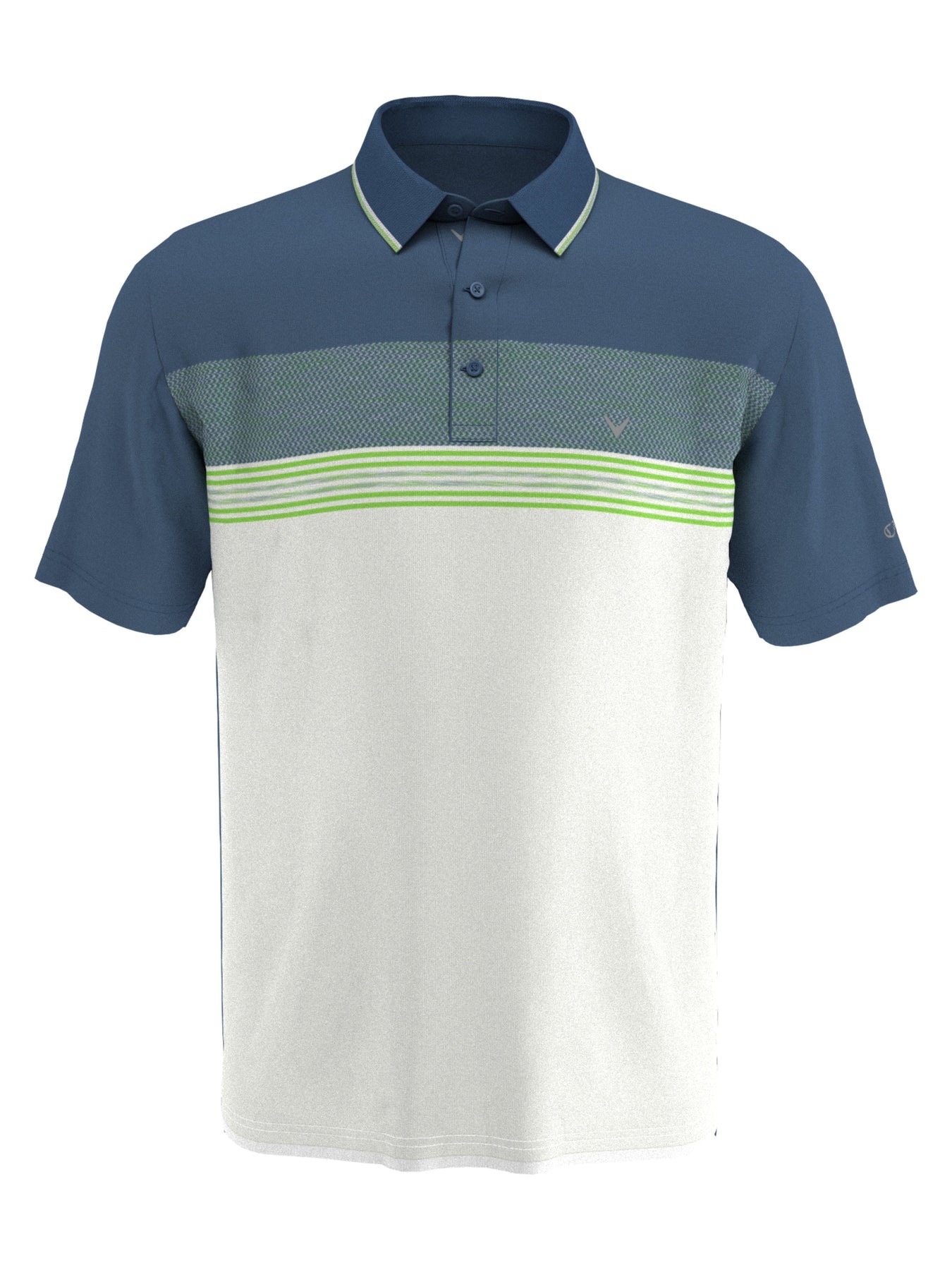 Update your style with this Callaway men’s golf shirt. Premium yarn gives this golf polo its soft feel, while stretch fabric with Swing Tech™ allows for a full range of motion with every swing. Featuring moisture-wicking Opti Dri™ technology, this short sleeve golf shirt is designed to help keep you comfortable and dry. Engineered stripes and a micro geo print at the chest add eye-catching style while complementing the tipping on the ribbed collar.