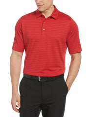 Keep your cool on the course in this Callaway men's golf shirt. Ventilated fabric with cooling technology circulates air through this short sleeve golf polo while Opti-Dri™ technology wicks moisture away from the skin. Swing Tech™ technology and added stretch help ensure a full range of motion so you can bend, twist, and swing in comfort. The versatile fine line print and classic three-button placket, are sure to make this one of your go-to golf tops.