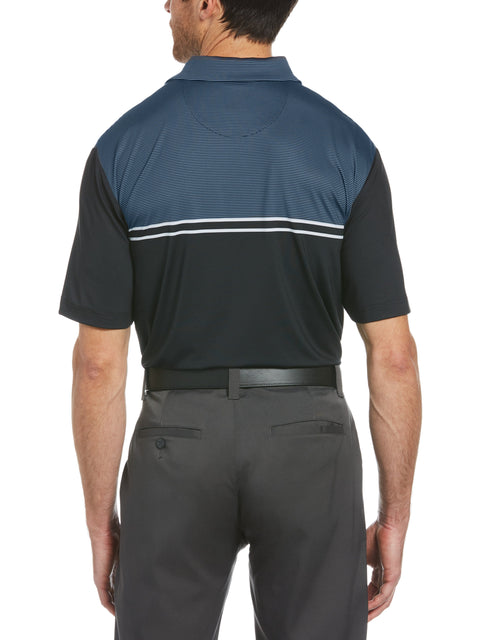 The Mens Finish Line Printed Polo is an ideal choice for golfers. Constructed with soft and smooth jersey fabric and Opti Dri™ moisture management, you'll enjoy breathable comfort and full range of motion. UPF fabric provides protection from the sun, both on and off the golf course. The classic golf fit ensures a sharp, polished look.