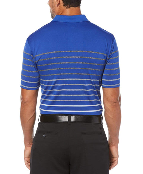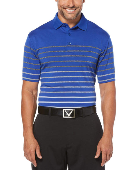 Stripe your drive down the center cut in this Callaway heathered stripe polo. The engineered design is created by thin heathered horizontal stripes that begin just above the three-button placket and continue to the bottom hem, changing colors along the way. Callaway's Opti Dri™: moisture wicking technology pulls sweat away from your body so you can cool down in the heat, Stretch: allows you to attack the green by providing your arms the freedom to produce a fluid swing, Shield: gives your skin superior protection against the sun's UV rays and Soft: finishes your polo with a smooth feel for enhanced comfort.