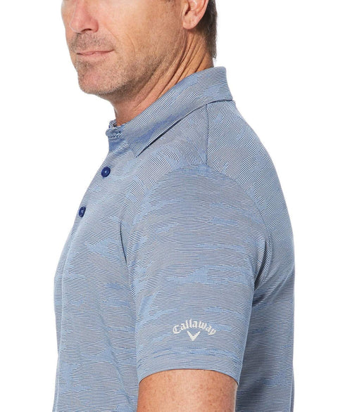A staple in any man's golf wardrobe, this solid-colored Callaway polo shirt offers both sophisticated style and practical performance features. The golf polo comes equipped with moisture-wicking and cooling technologies to keep you comfortable playing under the hot sun. Stretch fabric moves with you through each swing, and a jacquard weave gives it a subtle raised pattern. The golf shirt is finished with UV Block UPF 50 protection to help keep sunburns at bay.