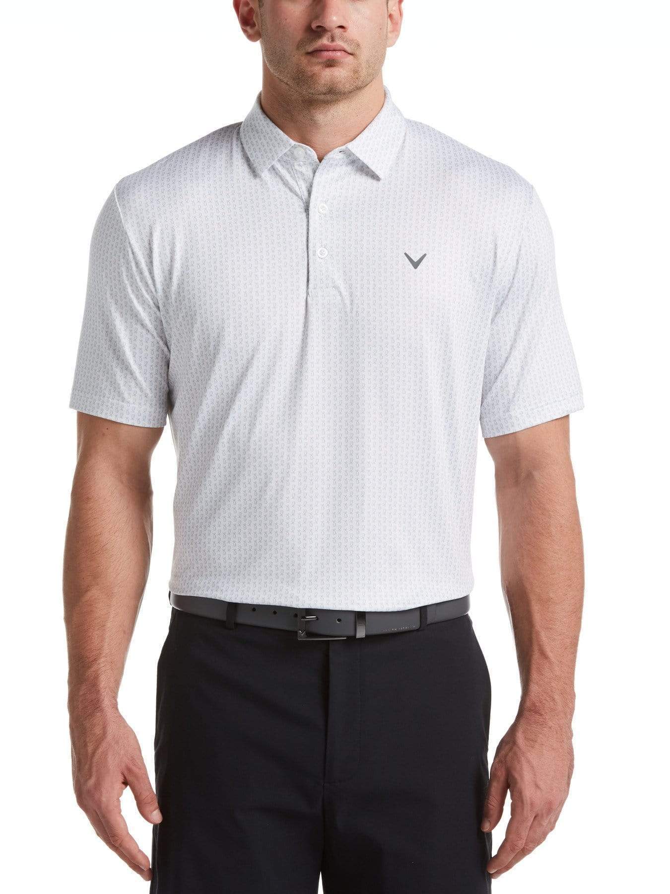 A mini golf print gives this Callaway golf polo a fun look and feel. Stretch fabric enhances your range of motion, letting you swing with confidence from the tee box to the green. Fusing classic styling with a comfortable fit, this golf shirt will keep you looking and feeling great round after round.