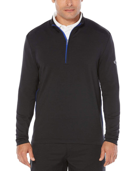 Outlast the inclement weather with style and comfort in this Callaway premium mid-layer pullover. The jacket features Outlast technology, which proactively manages the build up of heat and moisture to keep you cool in warmer weather and warm in cold weather, helping you stay comfortable day and night. Opti Dri™ moisture wicking technology pulls sweat away from your body so you can cool down in the heat, Stretch: allows you to attack the green by providing your arms the freedom to produce a fluid swing and Shield: gives your skin superior protection against the sun's UV rays.