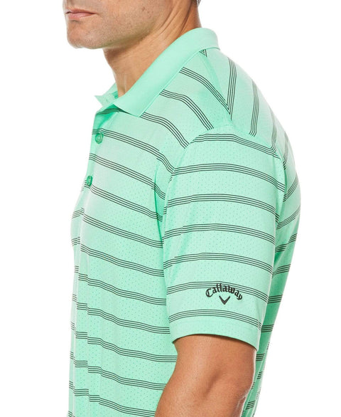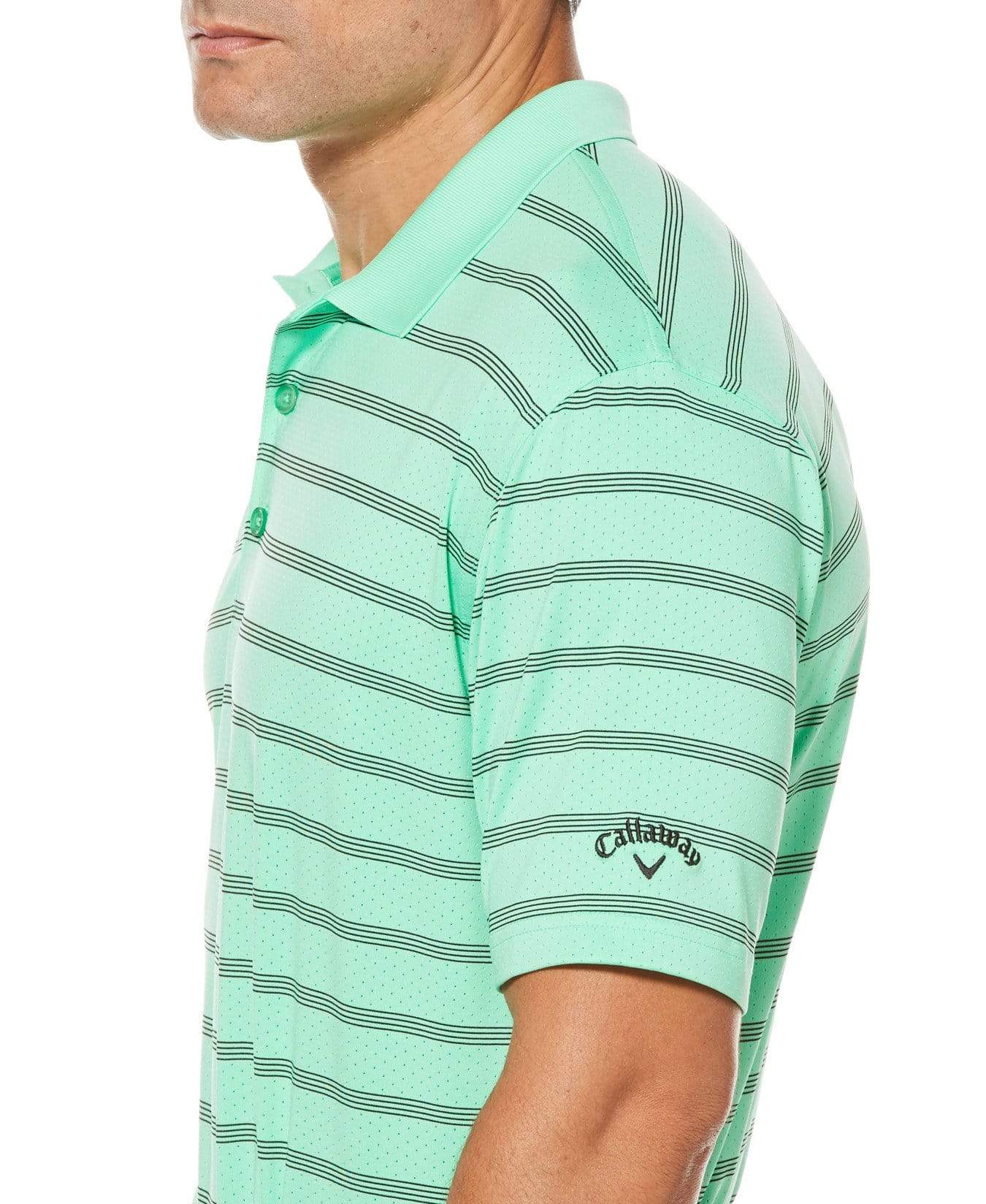 Stay true and steer clear of the second cut in our Performance Stripe Golf Polo. Constructed like a jersey with extra ventilation and maximum breathability, your polo is crafted with a pattern of three thin horizontal stripes that are grouped close together. One of our best sellers, we finished it with an embroidered Callaway Tour Logo on the right sleeve. Our Opti Dri™ moisture wicking technology pulls sweat away from your body so you can cool down in the heat, Opti-Stretch allows you to attack the green by providing your arms the freedom to produce a fluid swing and Opti-Vent engineered ventilation for enhanced comfort and cooling action.