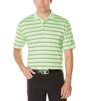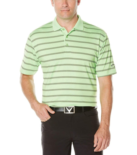 Stay true and steer clear of the second cut in our Performance Stripe Golf Polo. Constructed like a jersey with extra ventilation and maximum breathability, your polo is crafted with a pattern of three thin horizontal stripes that are grouped close together. One of our best sellers, we finished it with an embroidered Callaway Tour Logo on the right sleeve. Our Opti Dri™ moisture wicking technology pulls sweat away from your body so you can cool down in the heat, Opti-Stretch allows you to attack the green by providing your arms the freedom to produce a fluid swing and Opti-Vent engineered ventilation for enhanced comfort and cooling action.