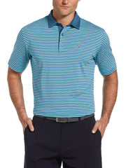 This refined Callaway men's golf polo features a stylish three-color yarn-dyed stripe print and contains stretch to maximize your range of motion. Built-in Opti Dri™ moisture-wicking and cooling technologies pull sweat and heat away from the skin to keep you cool and dry. This handsome golf shirt is equipped with UPF 40 protection to block out the sun's harmful rays while you play.