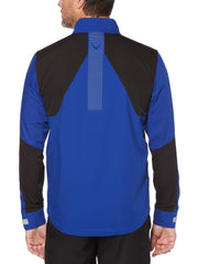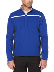 Whipping winds can sure throw off your ball flight and mess with game. This Callaway long sleeve windshirt will help you fend off inclement weather in style and win. The solid-colored, lightweight pullover jacket has a solid stripe running across the chest and is crafted with an adjustable elastic cord at the bottom hem. It features stretch fabric spanning the shoulder blades and bottoms of the sleeves so you can swing in comfort. Callaway's Repel resists wind and water with its lightweight fabrication and Stretch allows you to attack the green by providing your arms the freedom to produce a fluid swing.