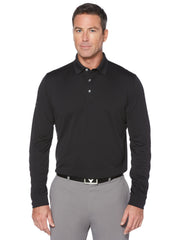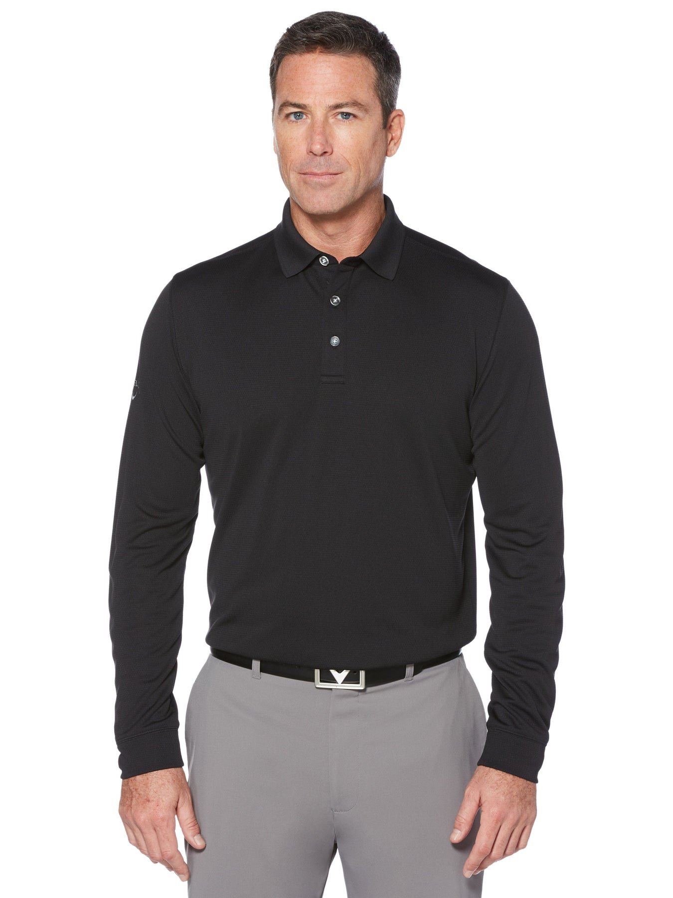Secure that weekend tee time, grab your clubs, this Callaway solid long sleeve polo and hit the course in style. The extremely fashionable, classic on-course look polo is from the Standard Collection, which fuses Callaway's most classic look into a roomier fit. Callaway's Opti Dri™ moisture wicking technology pulls sweat away from your body to keep you cool in the heat, cooling technology transfers heat away from your body to keep the garment cool and UPF 15 provides superior protection by blocking the sun's harmful UV rays.