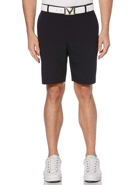 Prepare for warmer weather with this smart flat-front golf short. You'll enjoy full range of motion thanks to its stretch fabric. An active waistband keeps your shirt tucked in, allowing you to swing freely. Designed for style and comfort, the golf shorts feature moisture-wicking technology for all-day comfort