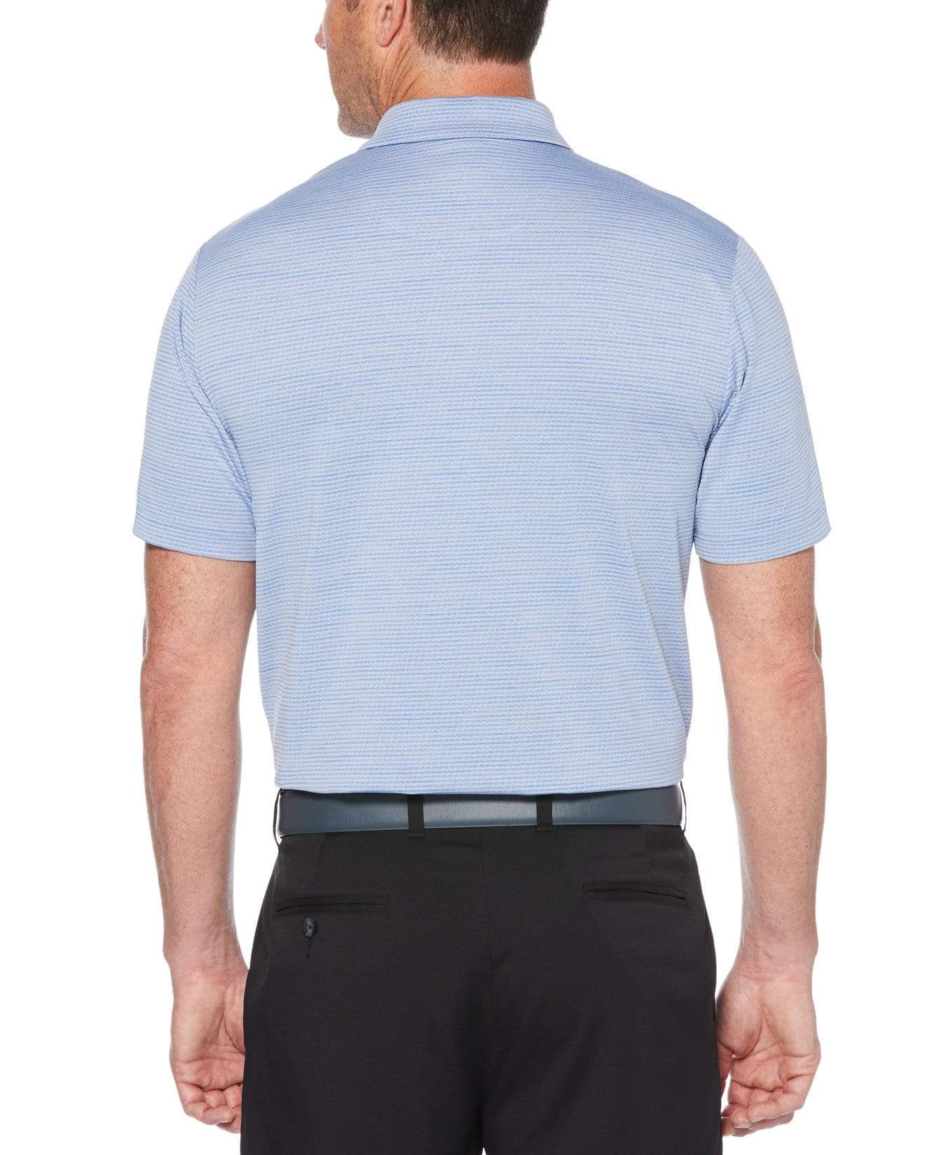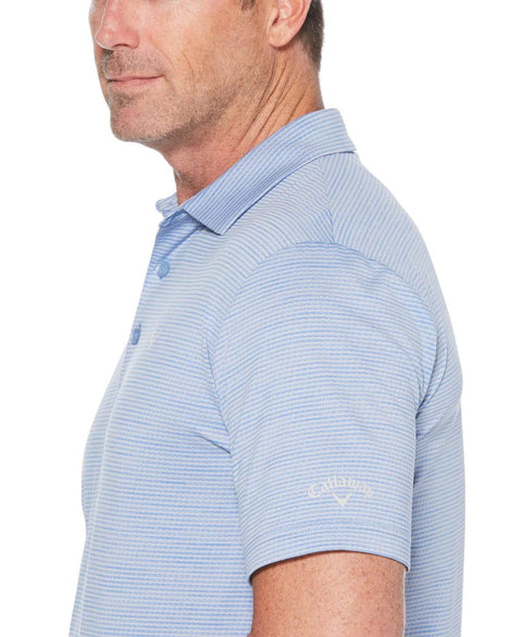 Made with stretch fabric that moves with you through each swing, this Callaway polo shirt is a great option for both casual and competitive golfers. The eye-catching space-dyed golf polo wicks away moisture to keep you comfortable and dry as the temperature rises. Jacquard fabrication gives the surface of the material a sophisticated raised pattern, while UV Block UPF 50 helps to guard against the suns damaging rays.