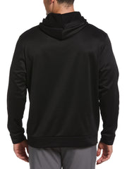 When the weather cools, layer up with this Callaway men’s golf hoodie and keep playing. Fleece fabrication provides lightweight warmth and the comfy hood adds an extra layer of coverage when you need it. The sun-protective fabric guards your skin against harmful UV rays. On or off the course, this golf pullover has you covered with its long sleeves and handy kangaroo pocket.