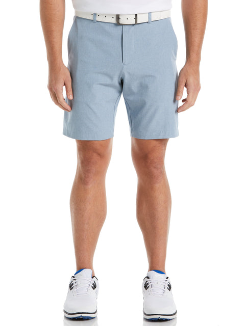 Concentrate on your game in these sporty Swing Tech Ergo golf shorts from Callaway. A smart mix of comfort and design features make these performance golf shorts a versatile choice for golfers who want the freedom to play without distraction. Swing Tech technology and added stretch in the fabric optimize your range of motion. Designed to deliver on-course comfort without sacrificing style, the men's golf shorts have an active waistband that moves with you while gripping your shirt to keep it smartly tucked. They feature pockets that provide plenty of room to store your scorecard, tees and ball marker while you drive down the fairway. The comfortable elastic waist golf shorts are crafted from plain weave fabrication for added durability, and they are machine washable for easy care and lasting wear. Fashionable as well as functional, they have a flat front design and subtle, heathered appearance for a stylish finish. A versatile addition to your golf clothing, these golf shorts come in a range of regular and Big & Tall sizes. Effortlessly pair them with a performance-driven Callaway polo shirt for put-together style that won't hold you back.