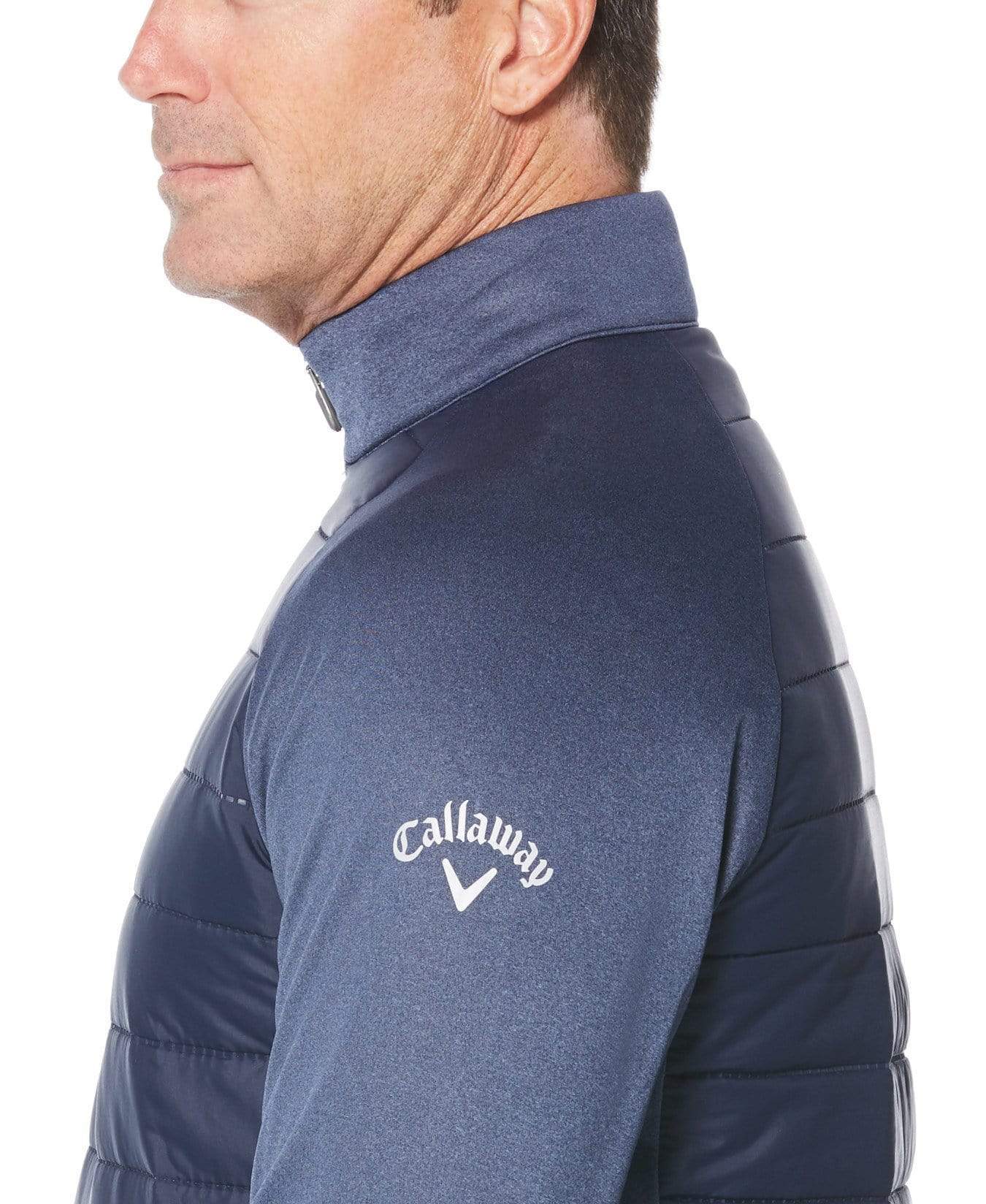 Quilting across the body provides a lightweight and warm finish to this Callaway Mens golf pullover. This Mens golf sweater boasts stretch fabric and Swing-Tech in each shoulder, which maximizes your freedom of movement. It's made from insulated thermal fabric, which creates a barrier between your body and cold weather.