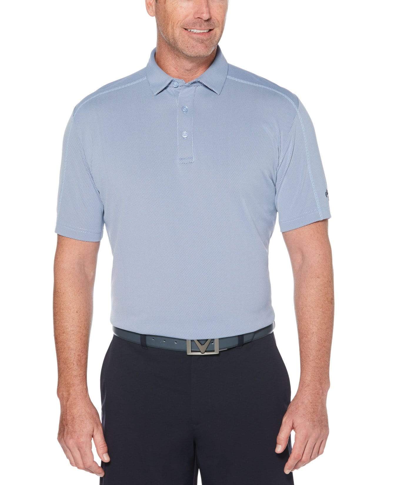 Our Callaway men's golf polo offers just the right amount of stretch so you can perfect your swing. It has an allover gingham print that looks great on the course and features built-in Opti Dri™ moisture-wicking technology to pull sweat away from your skin. This sleek men's golf top is equipped with UPF 50 sun protection to block the sun's harmful rays.